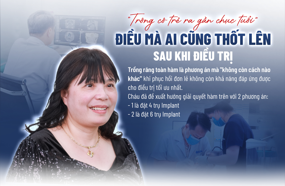 ” Chính ra từ ngày xưa cô nghe nói là làm Implant là nó đau, nhiều người cứ kêu thế. Khi cô đi làm thì cô cũng nghĩ là nó đau, nhưng bản thân mình không còn sự lựa chọn nào nữa vì: